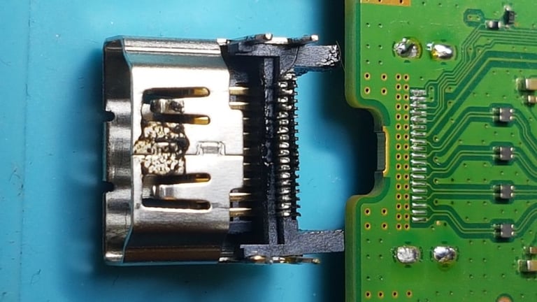 Souvent, il est nécessaire de recourir à la micro soudure (remplacement port HDMI, remplacement port USB-C, remplacement puce de charge, ….).